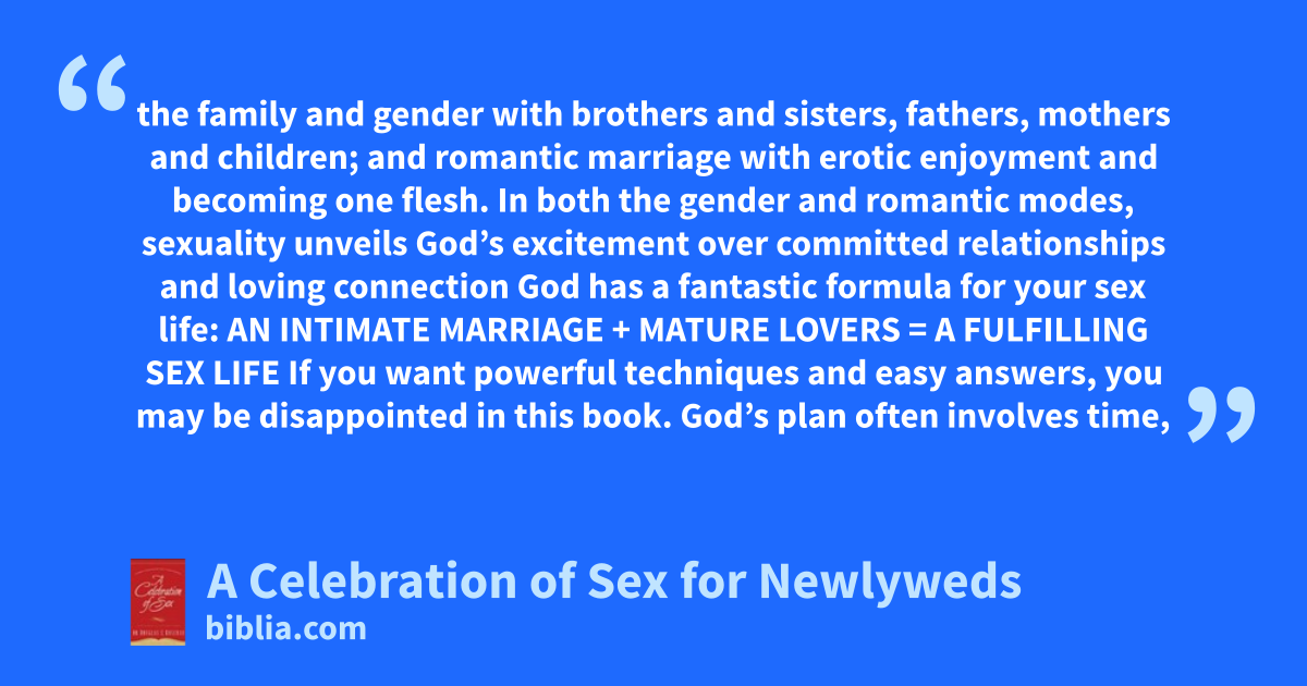 Reclaim the Bible-based concept of marriage as a satisfying one-flesh relationship. A definitive guide to marital intimacy for newlywed Christian couples, learn how to deepen sexual pleasure and enjoy God’s gift of sexual intimacy with your new spouse. It can be difficult to find biblically based sexual advice, especially early on in your marriage. A licensed psychologist and family therapist,...