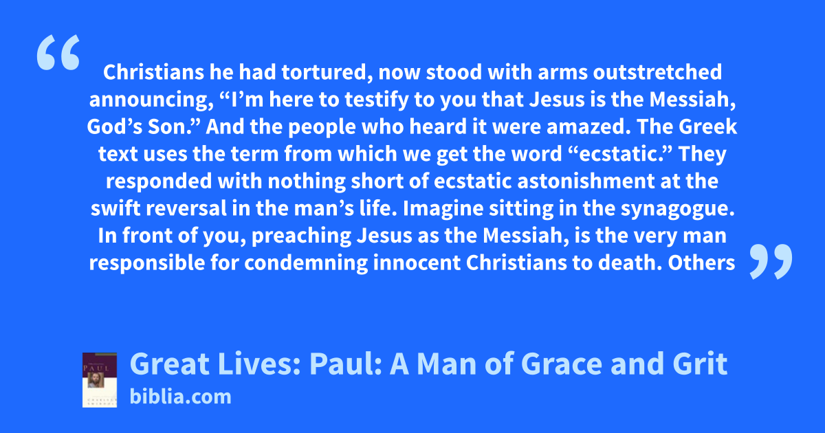 Christians he had tortured, now stood with arms outstretched announcing, “I’m here to testify to you that Jesus is the Messiah, God’s Son.” And the people who heard it were amazed. The Greek text uses the term from which we get the word “ecstatic.” They responded with nothing short of ecstatic astonishment at the swift reversal in the man’s life. Imagine sitting in the synagogue. In front of you, preaching Jesus as the Messiah, is the very man responsible for condemning innocent Christians to death. Others