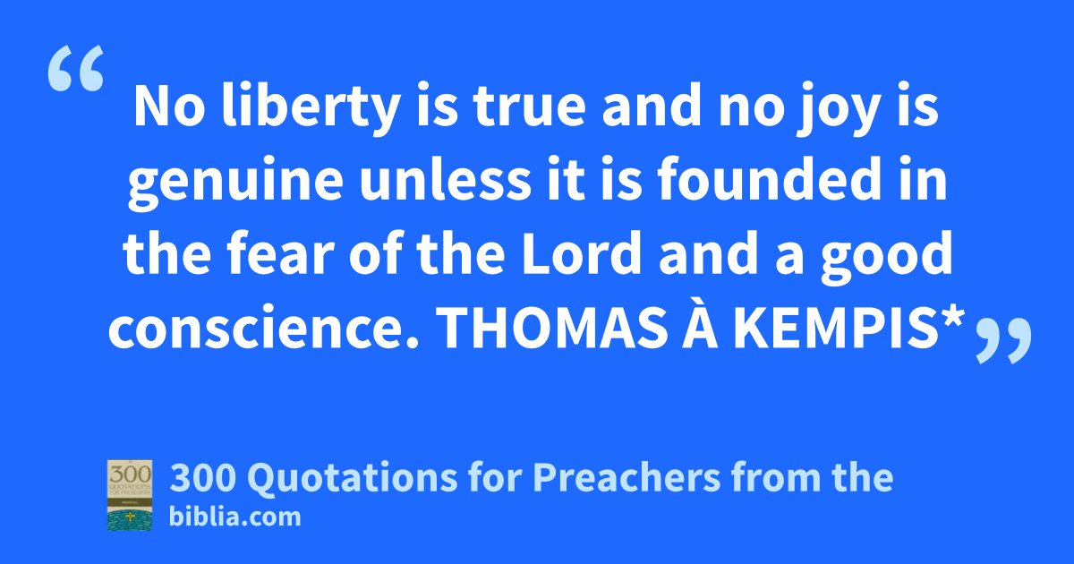 No liberty is true and no joy is genuine unless it is founded in the fear of the Lord and a good conscience. THOMAS À KEMPIS*
