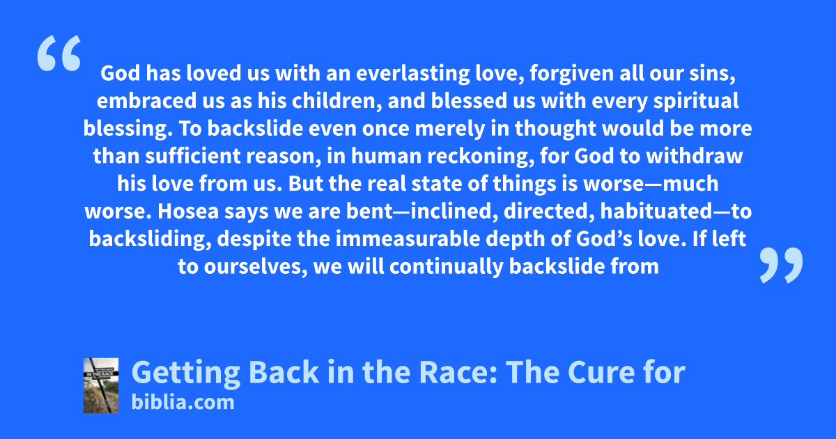 God has loved us with an everlasting love, forgiven all our sins, embraced us as his children, and blessed us with every spiritual blessing. To backslide even once merely in thought would be more than sufficient reason, in human reckoning, for God to withdraw his love from us. But the real state of things is worse—much worse. Hosea says we are bent—inclined, directed, habituated—to backsliding, despite the immeasurable depth of God’s love. If left to ourselves, we will continually backslide from