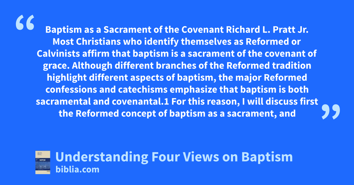Baptism as a Sacrament of the Covenant Richard L. Pratt Jr. Most Christians who identify themselves as Reformed or Calvinists affirm that baptism is a sacrament of the covenant of grace. Although different branches of the Reformed tradition highlight different aspects of baptism, the major Reformed confessions and catechisms emphasize that baptism is both sacramental and covenantal.1 For this reason, I will discuss first the Reformed concept of baptism as a sacrament, and