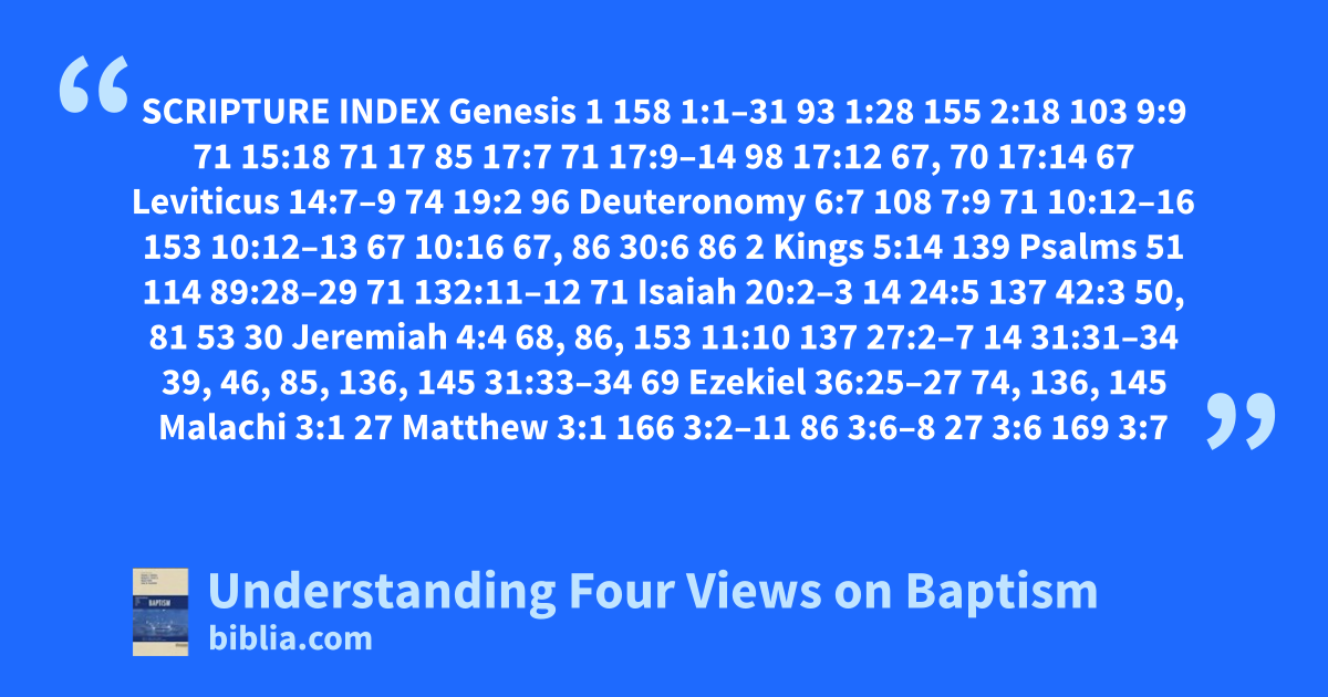 SCRIPTURE INDEX Genesis 1 158 1:1–31 93 1:28 155 2:18 103 9:9 71 15:18 71 17 85 17:7 71 17:9–14 98 17:12 67, 70 17:14 67 Leviticus 14:7–9 74 19:2 96 Deuteronomy 6:7 108 7:9 71 10:12–16 153 10:12–13 67 10:16 67, 86 30:6 86 2 Kings 5:14 139 Psalms 51 114 89:28–29 71 132:11–12 71 Isaiah 20:2–3 14 24:5 137 42:3 50, 81 53 30 Jeremiah 4:4 68, 86, 153 11:10 137 27:2–7 14 31:31–34 39, 46, 85, 136, 145 31:33–34 69 Ezekiel 36:25–27 74, 136, 145 Malachi 3:1 27 Matthew 3:1 166 3:2–11 86 3:6–8 27 3:6 169 3:7