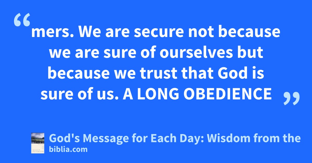 mers. We are secure not because we are sure of ourselves but because we trust that God is sure of us. A LONG OBEDIENCE