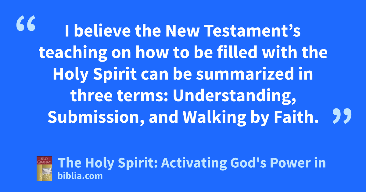 I believe the New Testament’s teaching on how to be filled with the Holy Spirit can be summarized in three terms: Understanding, Submission, and Walking by Faith.