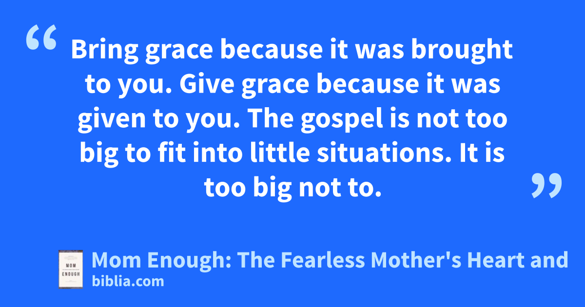 Bring grace because it was brought to you. Give grace because it was given to you. The gospel is not too big to fit into little situations. It is too big not to.