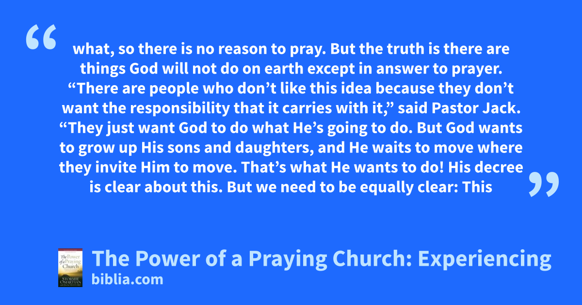 Believers are promised God's powerful presence when they gather with others in prayer. Now bestselling authors Stormie Omartian (more than 10 million books sold) and her longtime pastor, Jack Hayford, look at the life-changing benefits and world-changing effects that result from praying with others. Readers will see how they can • strengthen their personal prayer times with God • experience...