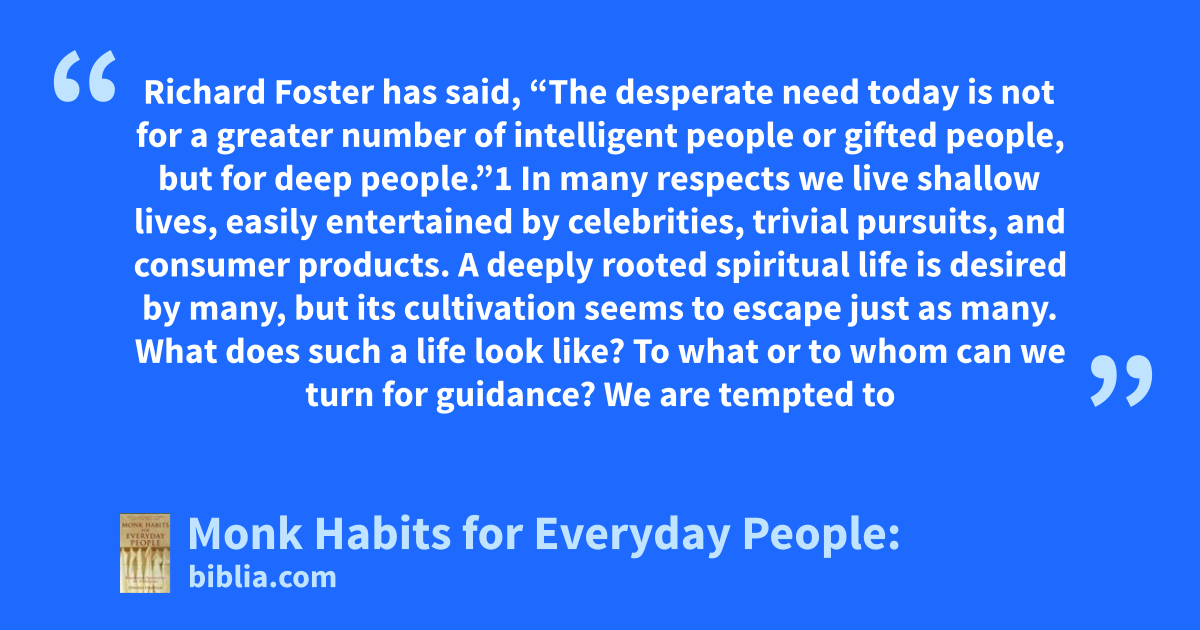 In their zeal for reform, early Protestant leaders tended to throw out Saint Benedict with the holy water. That is a mistake, writes Dennis Okholm, in Monk Habits for Everyday People. While on retreat in a Benedictine abbey, the author, a professor who was raised as a Pentecostal and a Baptist, observed how the meditative and ordered life of a monk lifted Jesus' teachings off the printed page and...