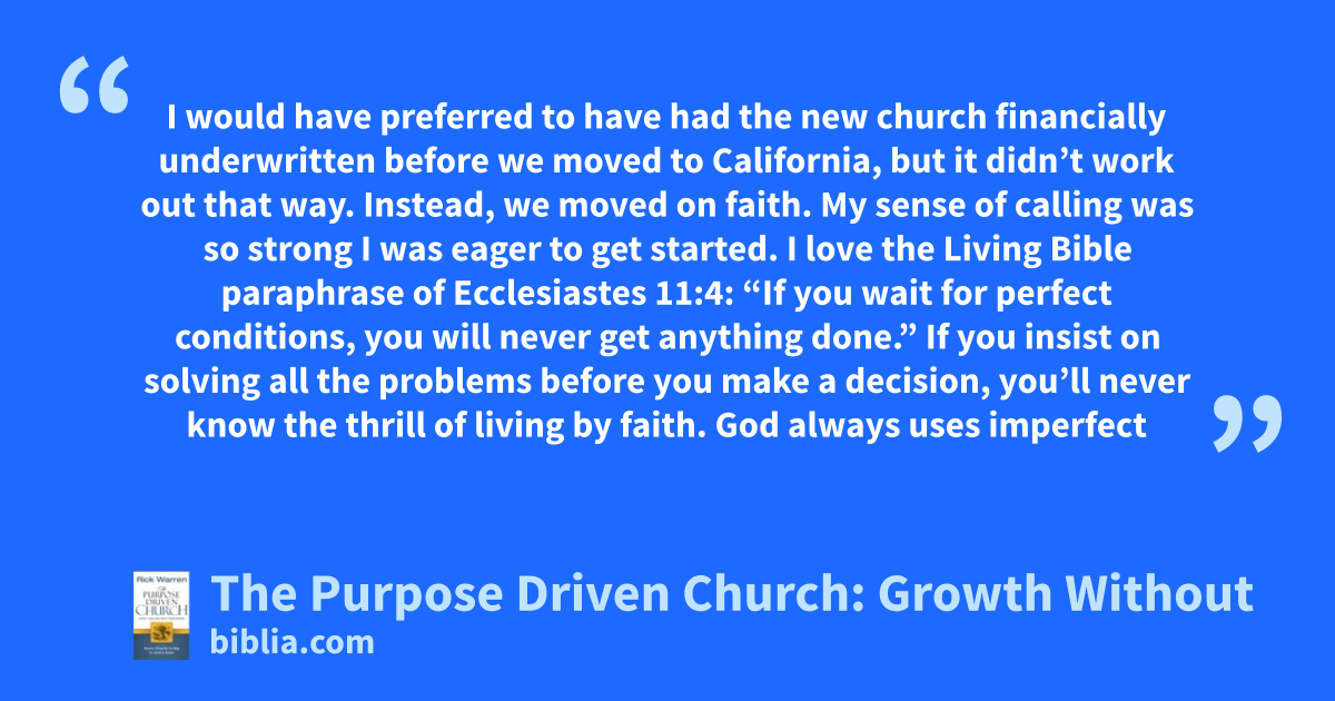 Every church is driven by something. Tradition, finances, programs, personalities, events, seekers, and even buildings can each be the controlling force in a church. But Rick Warren believers that in order for a church to be healthy if must become a purpose driven church by Jesus. Now the founding pastor of Saddleback Church shares a proven five-part strategy that will enable your church to grow....