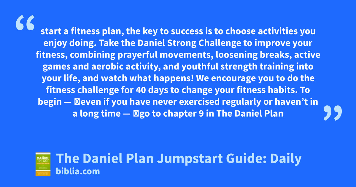 The Daniel Plan Jumpstart Guide provides a birds-eye view of getting your life on track to better health in five key areas: Faith, Food, Fitness, Focus, and Friends being the secret to a healthy lifestyle. This quick guide provides all the key principles for readers to gain a vision for health and get started. This booklet is a 40-day guide that breaks out existing content from The Daniel Plan:...