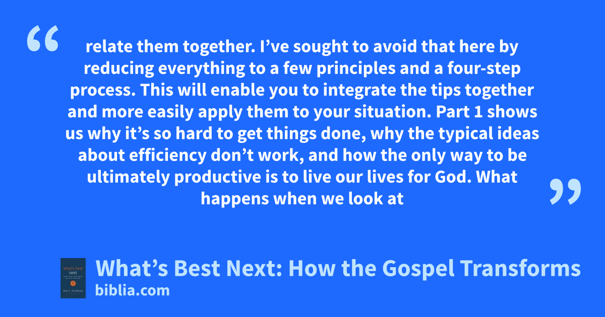 Do Work That Matters Productivity isn’t just about getting more things done. It’s about getting the right things done---the things that count, make a difference, and move the world forward. In our current era of massive overload, this is harder than ever before. So how do you get more of the right things done without confusing mere activity for actual productivity? When we take God’s purposes...