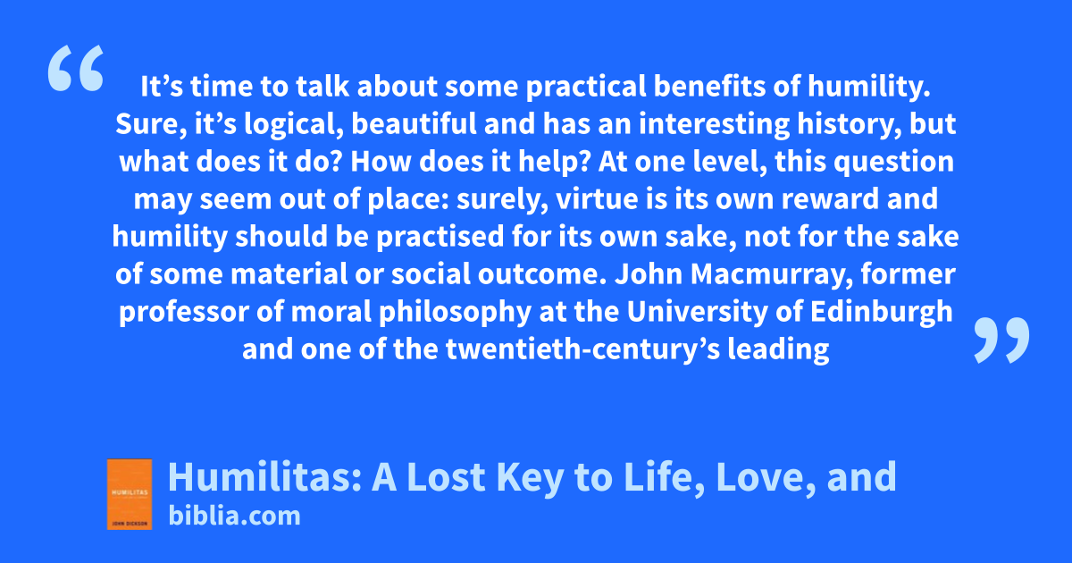 It’s time to talk about some practical benefits of humility. Sure, it’s logical, beautiful and has an interesting history, but what does it do? How does it help? At one level, this question may seem out of place: surely, virtue is its own reward and humility should be practised for its own sake, not for the sake of some material or social outcome. John Macmurray, former professor of moral philosophy at the University of Edinburgh and one of the twentieth-century’s leading