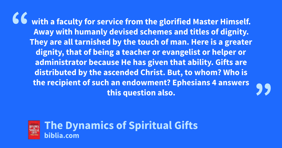 Our churches have hardly begun to tap the potential in the pews. Many Christians have settled for far less than God intends because many have never discovered or developed their spiritual gifts. "An understanding of Ephesians 4:11-16 has changed my entire perspective on my Christian service. I discovered that one of my highest priorities must be equipping the saints for their work of service....
