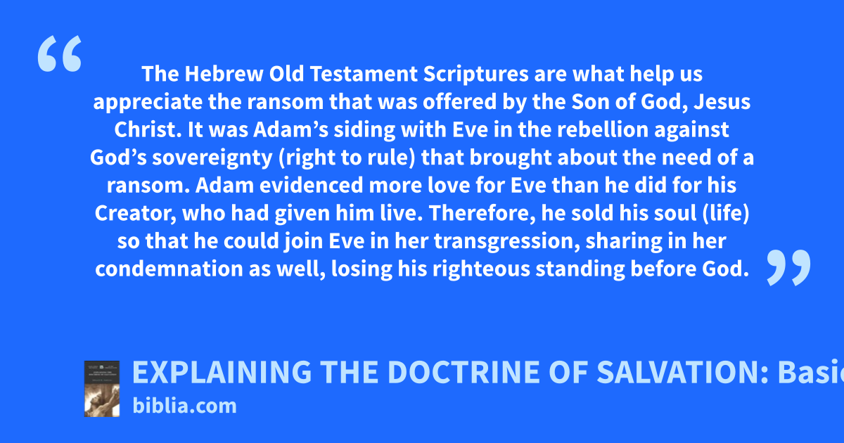 The Hebrew Old Testament Scriptures are what help us appreciate the ransom that was offered by the Son of God, Jesus Christ. It was Adam’s siding with Eve in the rebellion against God’s sovereignty (right to rule) that brought about the need of a ransom. Adam evidenced more love for Eve than he did for his Creator, who had given him live. Therefore, he sold his soul (life) so that he could join Eve in her transgression, sharing in her condemnation as well, losing his righteous standing before God.