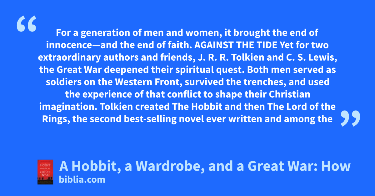 NEW YORK TIMES BESTSELLER Deepen your insight into and appreciation for the writings J. R. R. Tolkien and C. S. Lewis as you explore the untold story of how the First World War shaped their lives, faith, and writings. Had there been no Great War, there would have been no Hobbit, no Lord of the Rings, no Narnia—perhaps even no conversion to Christianity by C.S. Lewis. The First World War laid...