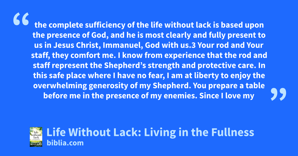 What would it be like to live without fear? Join renowned philosopher Dallas Willard as he shares the biblically-backed secret to living with true contentment, peace, and security. In Life Without Lack, Dallas Willard revolutionizes our understanding of Psalm 23 by taking this comfortably familiar passage and revealing its extraordinary promises: "The Lord is my shepherd, I shall not want...Yea,...