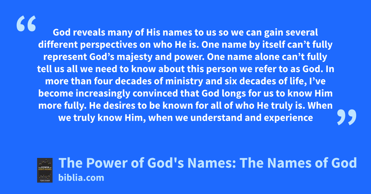God reveals many of His names to us so we can gain several different perspectives on who He is. One name by itself can’t fully represent God’s majesty and power. One name alone can’t fully tell us all we need to know about this person we refer to as God. In more than four decades of ministry and six decades of life, I’ve become increasingly convinced that God longs for us to know Him more fully. He desires to be known for all of who He truly is. When we truly know Him, when we understand and experience