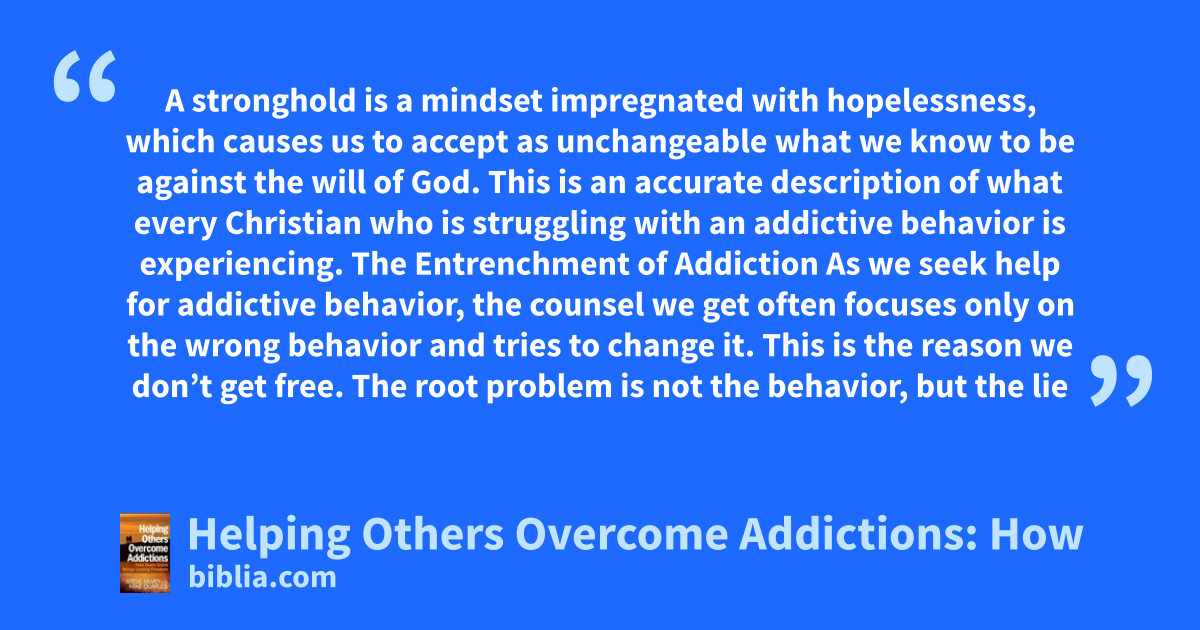 A stronghold is a mindset impregnated with hopelessness, which causes us to accept as unchangeable what we know to be against the will of God. This is an accurate description of what every Christian who is struggling with an addictive behavior is experiencing. The Entrenchment of Addiction As we seek help for addictive behavior, the counsel we get often focuses only on the wrong behavior and tries to change it. This is the reason we don’t get free. The root problem is not the behavior, but the lie