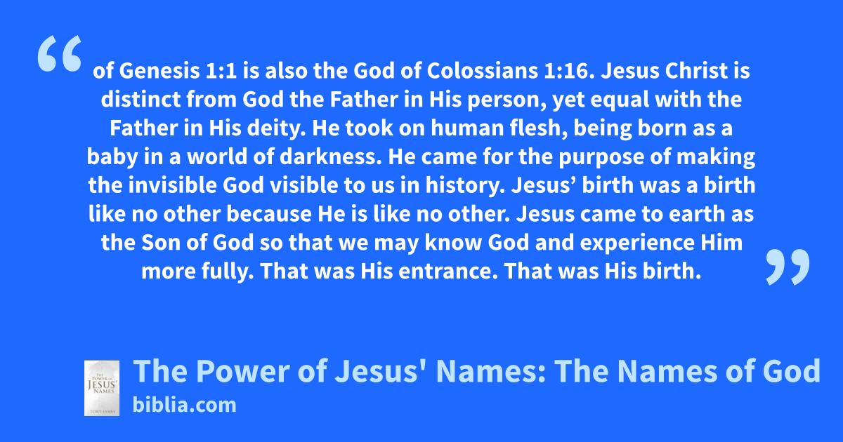 of Genesis 1:1 is also the God of Colossians 1:16. Jesus Christ is distinct from God the Father in His person, yet equal with the Father in His deity. He took on human flesh, being born as a baby in a world of darkness. He came for the purpose of making the invisible God visible to us in history. Jesus’ birth was a birth like no other because He is like no other. Jesus came to earth as the Son of God so that we may know God and experience Him more fully. That was His entrance. That was His birth.