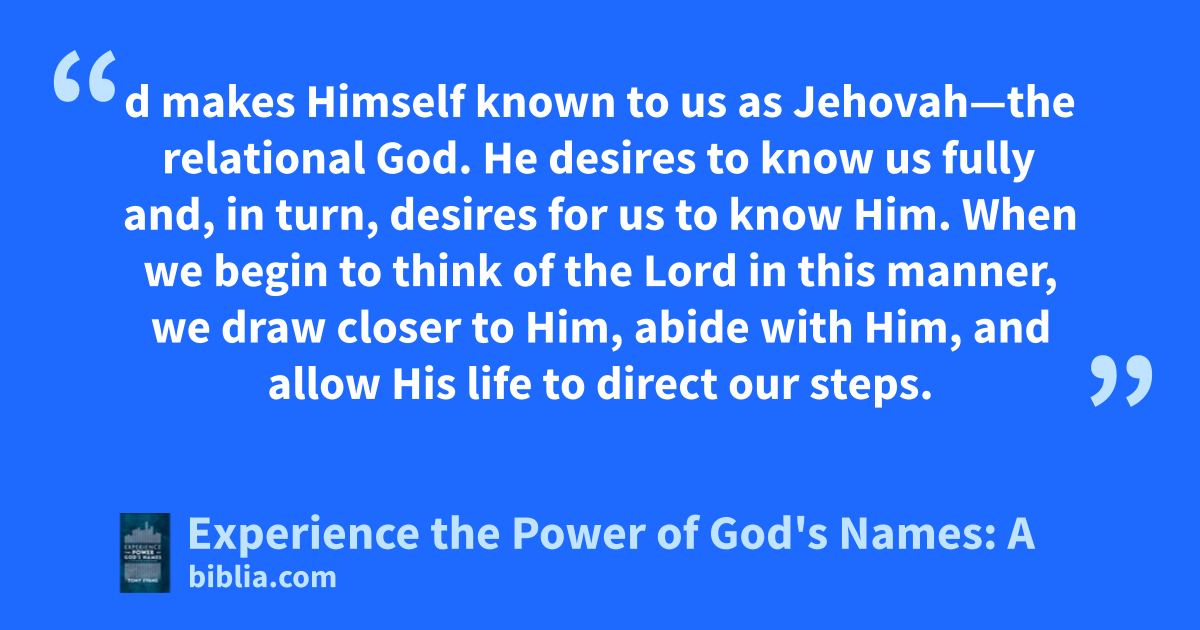 d makes Himself known to us as Jehovah—the relational God. He desires to know us fully and, in turn, desires for us to know Him. When we begin to think of the Lord in this manner, we draw closer to Him, abide with Him, and allow His life to direct our steps.