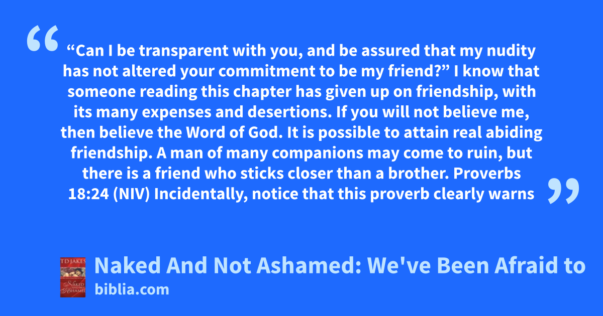"Someone, quick! Call the supper to an end and tell us who you really are beneath your churchy look and your pious posture. Tell us something that makes us comfortable with our own nudity. We have carefully hidden our struggles and paraded only our victories, but the whole country is falling asleep at the parade!" Be prepared to be challenged by Naked and Not Ashamed as you have never been...