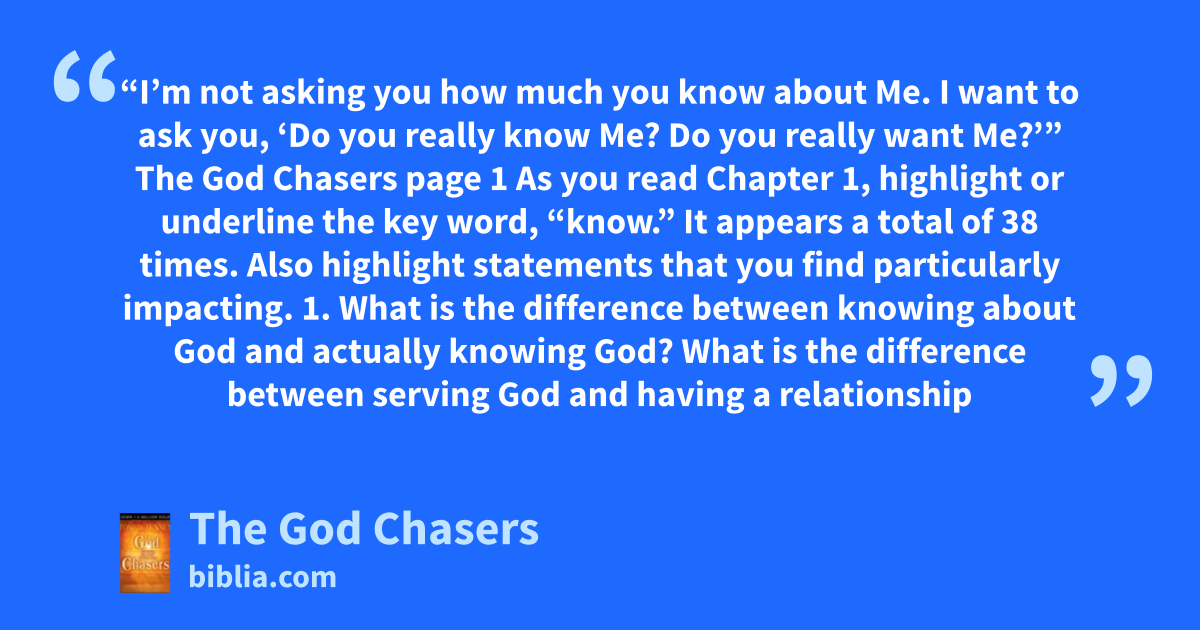 This expanded edition of the original best-seller includes a daily devotional for personal reflection and a study guide. A God chaser is a person whose passion for God’s presence presses him to chase the impossible in hopes that the uncatchable might catch him. A child chases a loving parent until, suddenly, the strong arms of the father enfold the chaser. The pursuer becomes the captive; the...
