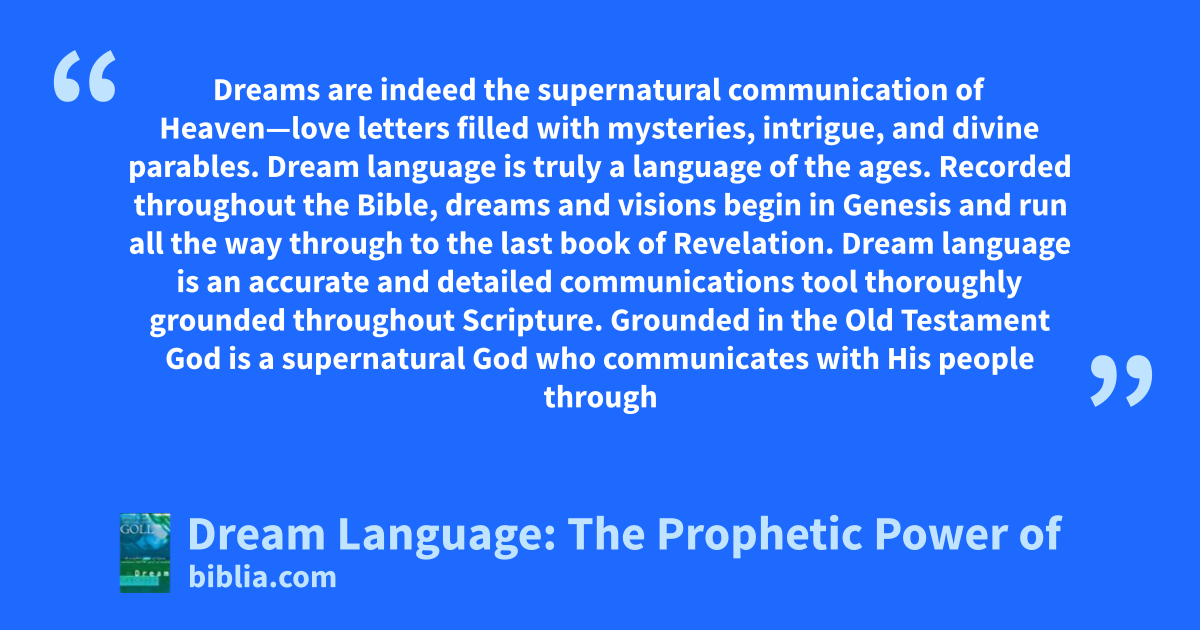 Dreams are indeed the supernatural communication of Heaven—love letters filled with mysteries, intrigue, and divine parables. Dream language is truly a language of the ages. Recorded throughout the Bible, dreams and visions begin in Genesis and run all the way through to the last book of Revelation. Dream language is an accurate and detailed communications tool thoroughly grounded throughout Scripture. Grounded in the Old Testament God is a supernatural God who communicates with His people through