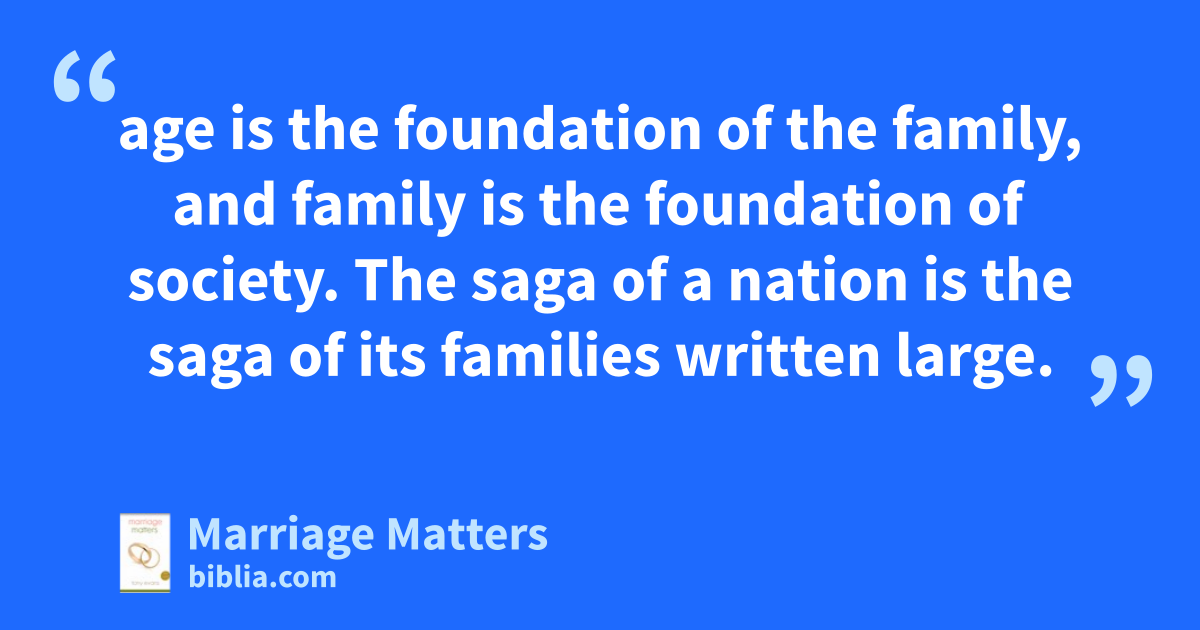 age is the foundation of the family, and family is the foundation of society. The saga of a nation is the saga of its families written large.