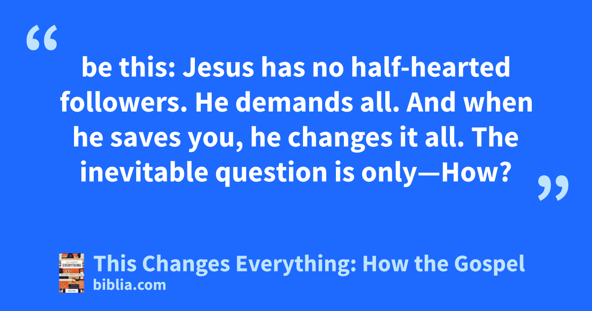 be this: Jesus has no half-hearted followers. He demands all. And when he saves you, he changes it all. The inevitable question is only—How?