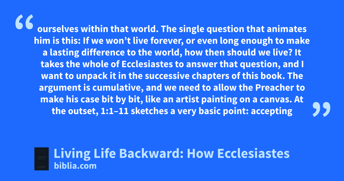 What if it is death that teaches us how to truly live? Keeping the end in mind shapes how we live our lives in the here and now. Living life backward means taking the one thing in our future that is certain—death—and letting that inform our journey before we get there. Looking to the book of Ecclesiastes for wisdom, Living Life Backward was written to shake up our expectations and priorities...