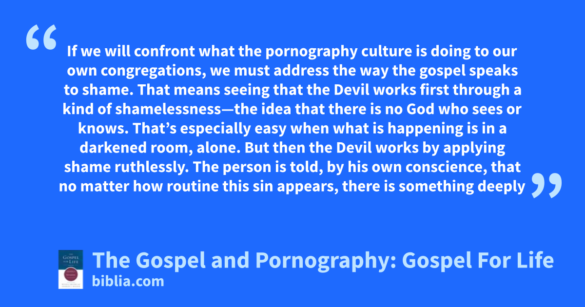 If we will confront what the pornography culture is doing to our own congregations, we must address the way the gospel speaks to shame. That means seeing that the Devil works first through a kind of shamelessness—the idea that there is no God who sees or knows. That’s especially easy when what is happening is in a darkened room, alone. But then the Devil works by applying shame ruthlessly. The person is told, by his own conscience, that no matter how routine this sin appears, there is something deeply