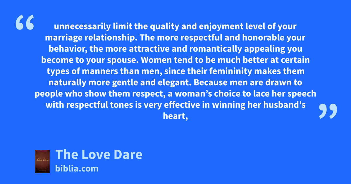 Unconditional love is eagerly promised at weddings, but rarely practiced in real life. As a result, romantic hopes are often replaced with disappointment in the home. But it doesn’t have to stay that way. The Love Dare, the New York Times No. 1 best seller that has sold five million copies and was major plot device in the popular movie Fireproof, is a 40-day challenge for husbands and wives to...