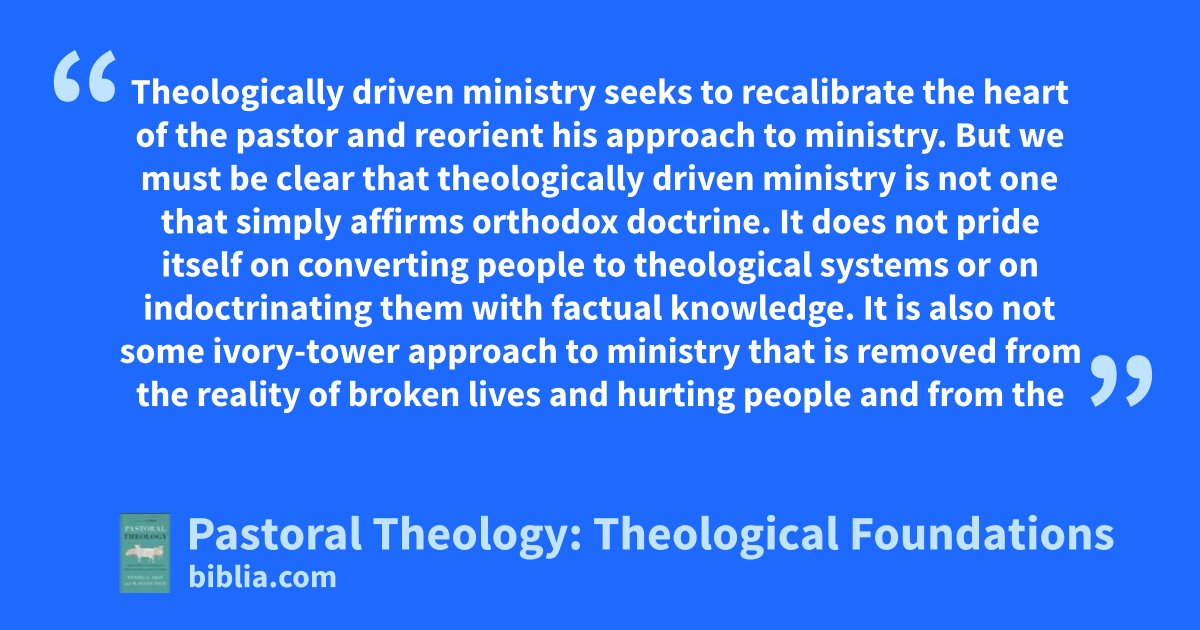 Theologically driven ministry seeks to recalibrate the heart of the pastor and reorient his approach to ministry. But we must be clear that theologically driven ministry is not one that simply affirms orthodox doctrine. It does not pride itself on converting people to theological systems or on indoctrinating them with factual knowledge. It is also not some ivory-tower approach to ministry that is removed from the reality of broken lives and hurting people and from the