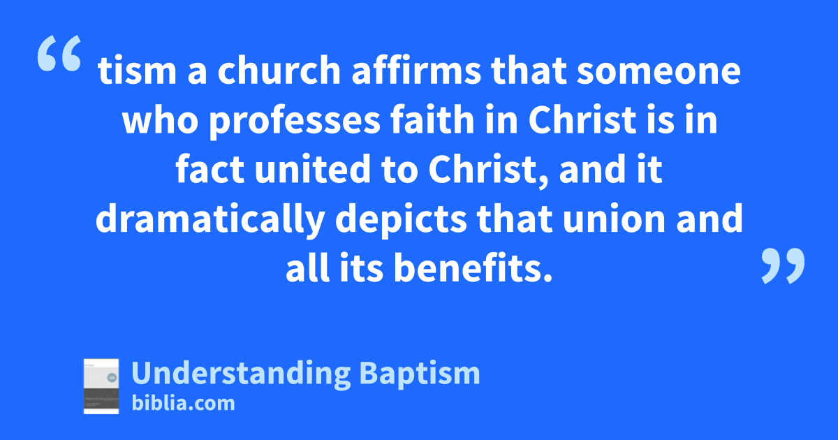 tism a church affirms that someone who professes faith in Christ is in fact united to Christ, and it dramatically depicts that union and all its benefits.