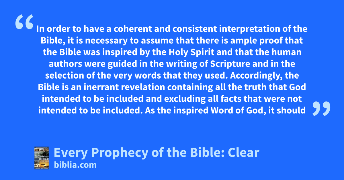 In order to have a coherent and consistent interpretation of the Bible, it is necessary to assume that there is ample proof that the Bible was inspired by the Holy Spirit and that the human authors were guided in the writing of Scripture and in the selection of the very words that they used. Accordingly, the Bible is an inerrant revelation containing all the truth that God intended to be included and excluding all facts that were not intended to be included. As the inspired Word of God, it should