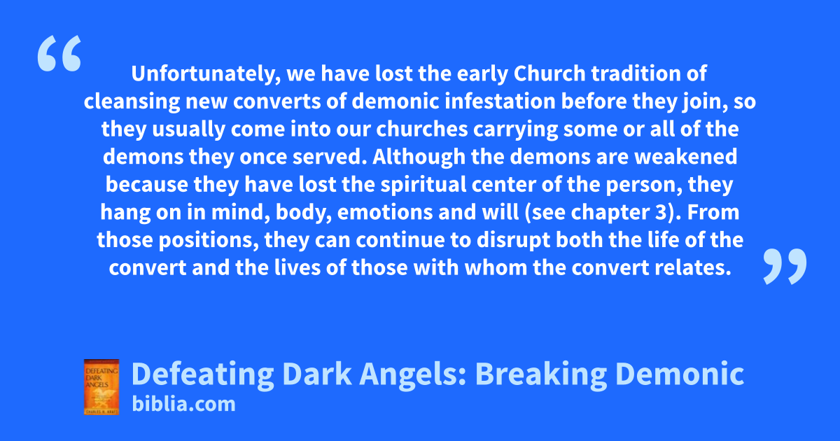A Practical, Complete Guide to Defeating Demons Demonic oppression is a very real spiritual phenomenon, yet it remains a terrifying and misunderstood subject for many Christians. What does the Bible say? Can demons exert power over Christians? Can a Christian be possessed? How do you know if a problem is psychological or spiritual? In this revised edition of Defeating Dark Angels, Dr....