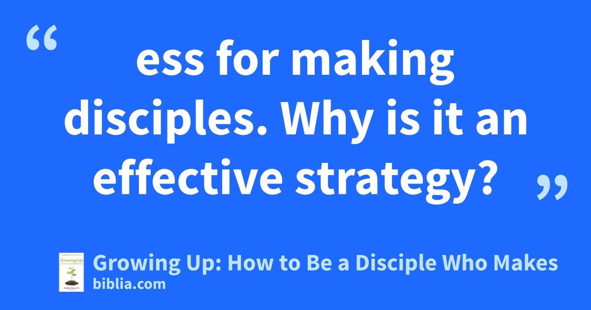 ess for making disciples. Why is it an effective strategy?