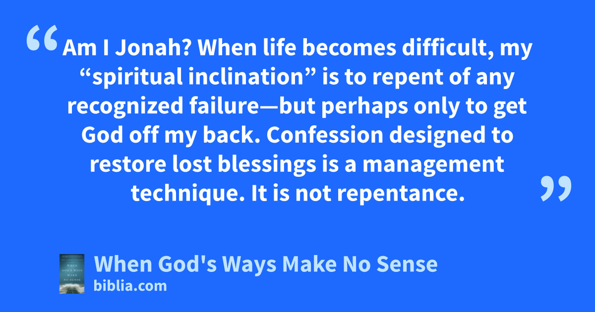 travel to Nineveh, on foot. He walked nearly nine hundred miles over rough terrain through dangerous country. Uninvited, he showed up in Nineveh and preached a message that would likely offend everybody. Beneath outward conformity to God’s will, a reservoir of vile motivation may exist. It did in Jonah. It happens in Christians today: • Men “love” their wives to avoid tension. • Women “love” their husbands to win love in return. • Parents “love” their children to enjoy good kids. • Friends “love” their