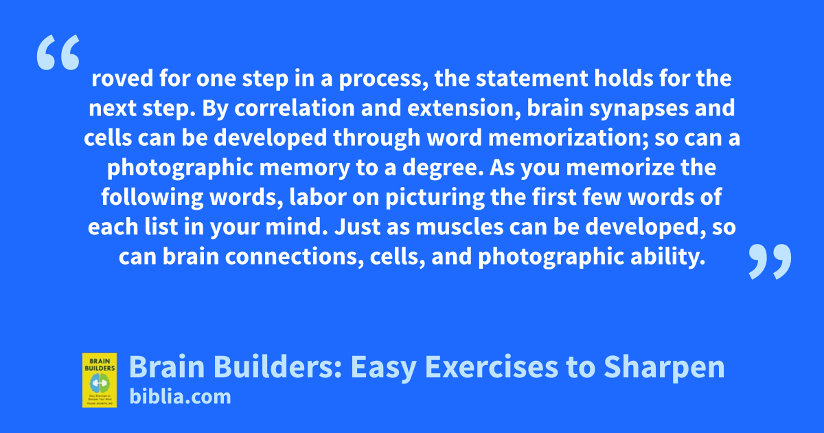 Brain Builders helps readers tap into more of their brain's potential through the mental exercise of vocabulary building and memorization. With the exercises in this book, readers can improve test scores, increase IQ, memorize more information, communicate more effectively, and excel in work and interactions with other people. The book also reveals eight time-proven memory techniques, encourages...