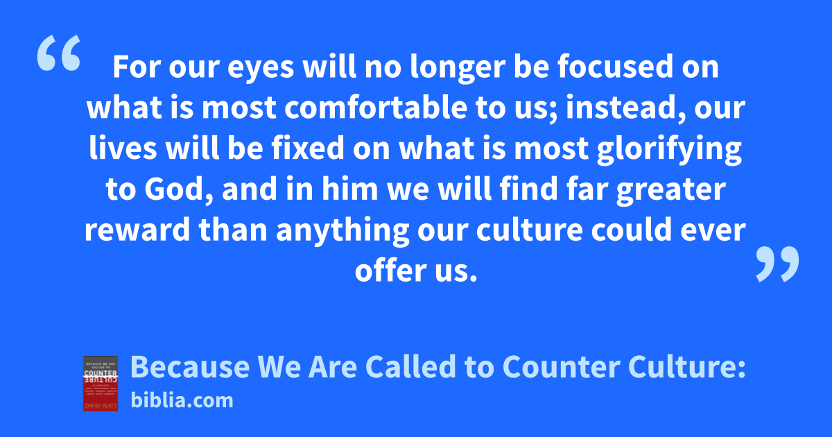 For our eyes will no longer be focused on what is most comfortable to us; instead, our lives will be fixed on what is most glorifying to God, and in him we will find far greater reward than anything our culture could ever offer us.