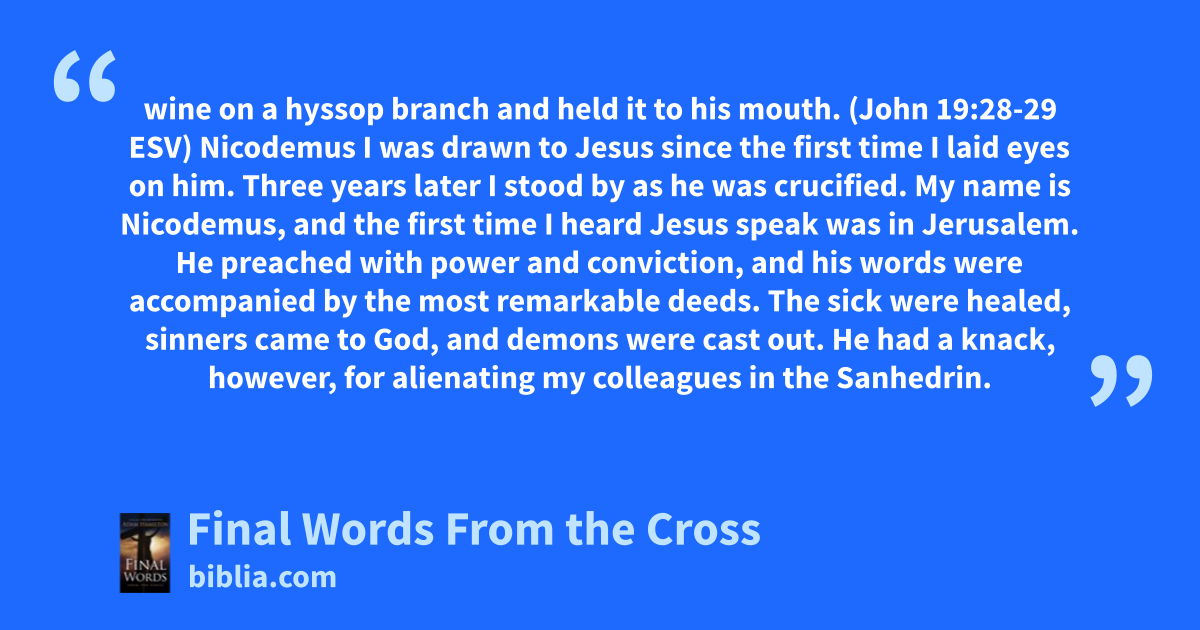 In life and in death, Jesus’ words were powerful and meaningful. Despite the serious effort and increased pain required for Jesus to speak as he hung on the cross, Jesus spoke seven “final words”—statements that have much to teach us about Jesus, his Father, and ourselves: Father Forgive Them Today You Will Be with Me in Paradise Behold Your Son…Behold Your Mother My God, My God, Why Have...
