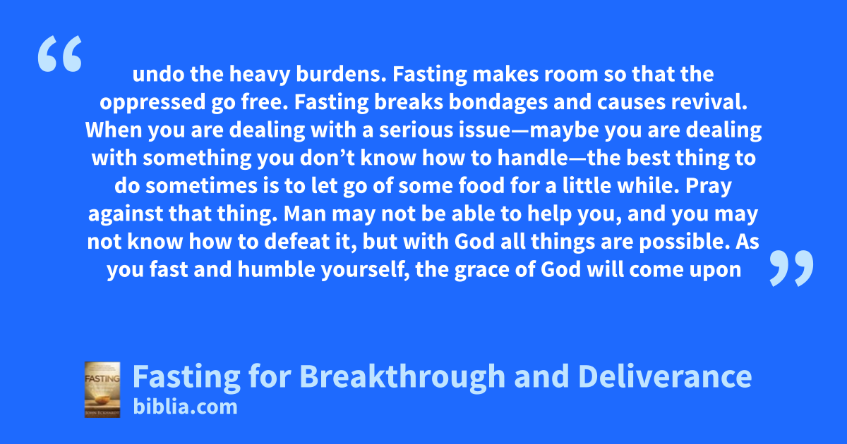 Matthew 17:21 tells us that there are some spirits in a person, region, or nation that cannot be overcome without fasting. Many believers struggle with certain limitations that they cannot seem to break through. A revelation of the power of fasting will result in victories that would not be ordinarily obtained. A life of consistent fasting will cause many victories to manifest. God’s will is for...