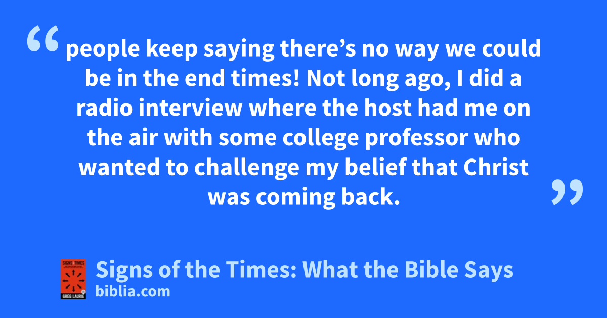 people keep saying there’s no way we could be in the end times! Not long ago, I did a radio interview where the host had me on the air with some college professor who wanted to challenge my belief that Christ was coming back.