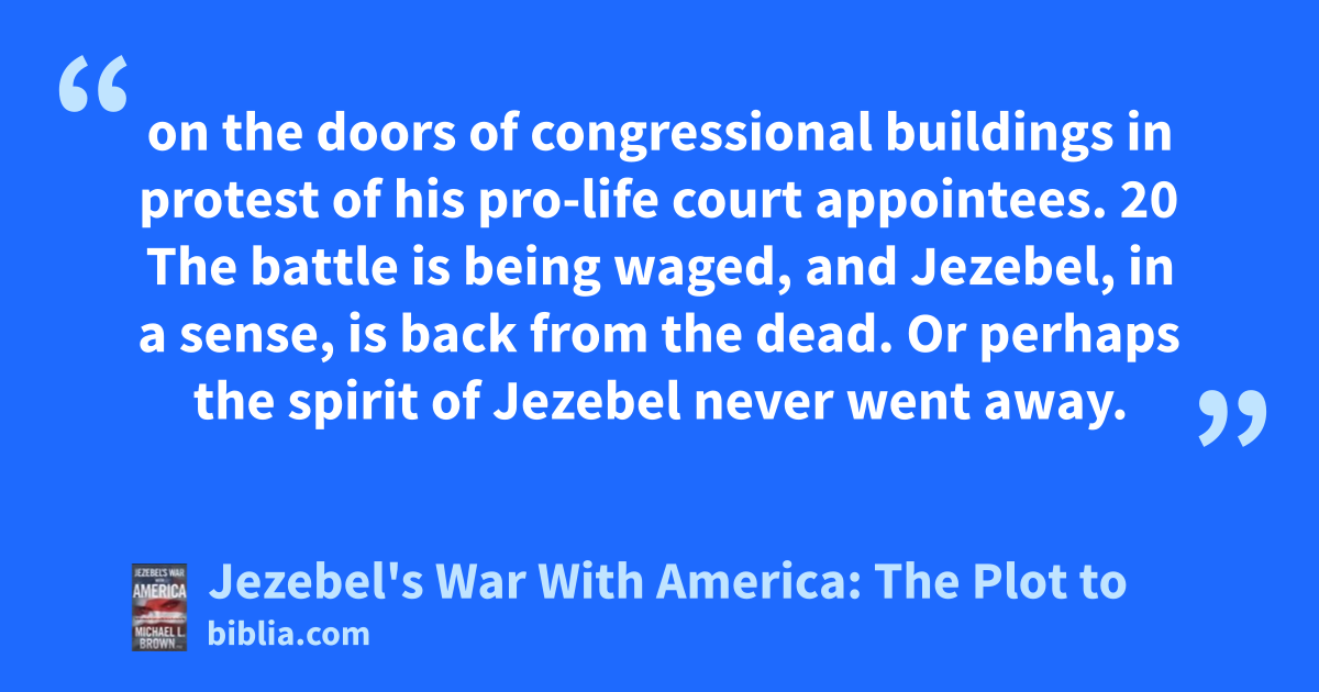 on the doors of congressional buildings in protest of his pro-life court appointees. 20 The battle is being waged, and Jezebel, in a sense, is back from the dead. Or perhaps the spirit of Jezebel never went away.