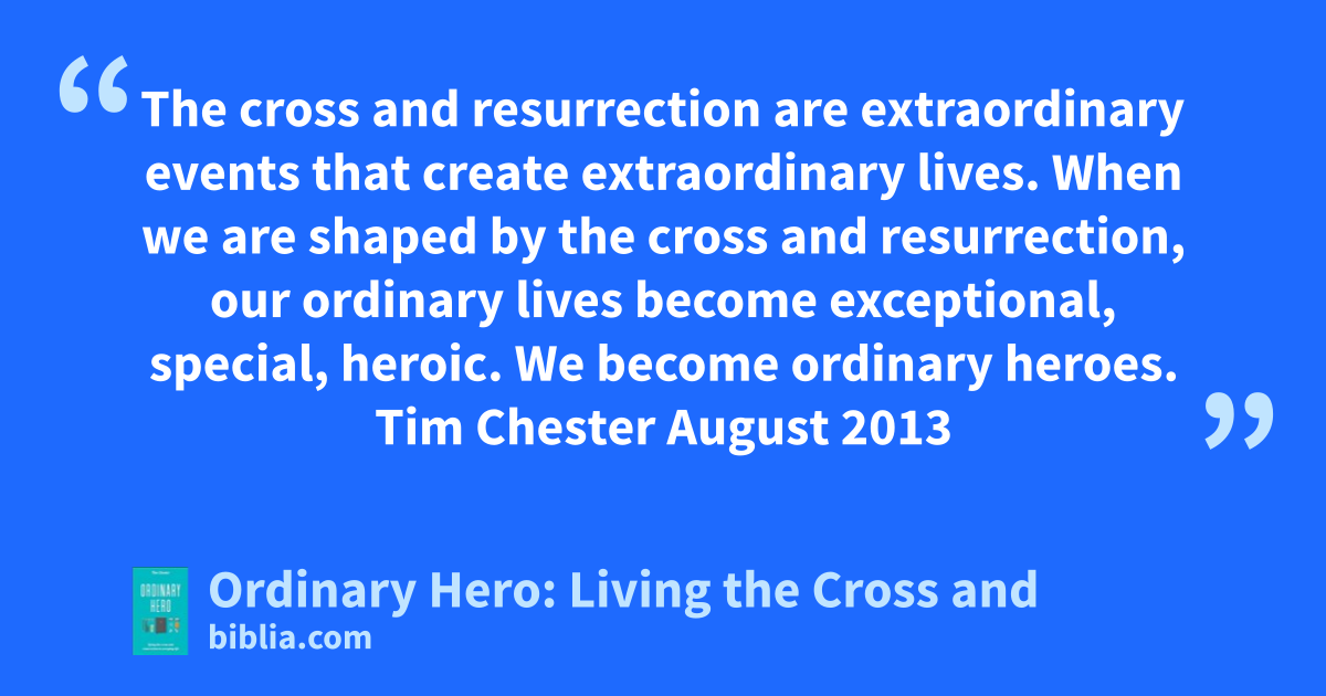 The cross and resurrection are extraordinary events that create extraordinary lives. When we are shaped by the cross and resurrection, our ordinary lives become exceptional, special, heroic. We become ordinary heroes. Tim Chester August 2013