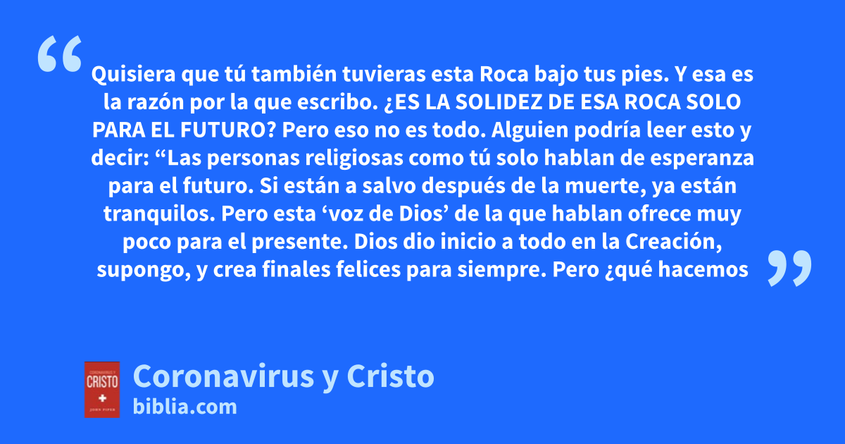 Quisiera que tú también tuvieras esta Roca bajo tus pies. Y esa es la razón por la que escribo. ¿ES LA SOLIDEZ DE ESA ROCA SOLO PARA EL FUTURO? Pero eso no es todo. Alguien podría leer esto y decir: “Las personas religiosas como tú solo hablan de esperanza para el futuro. Si están a salvo después de la muerte, ya están tranquilos. Pero esta ‘voz de Dios’ de la que hablan ofrece muy poco para el presente. Dios dio inicio a todo en la Creación, supongo, y crea finales felices para siempre. Pero ¿qué hacemos