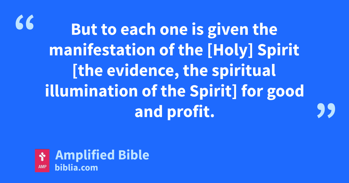 But to each one is given the manifestation of the [Holy] Spirit [the evidence, the spiritual illumination of the Spirit] for good and profit.