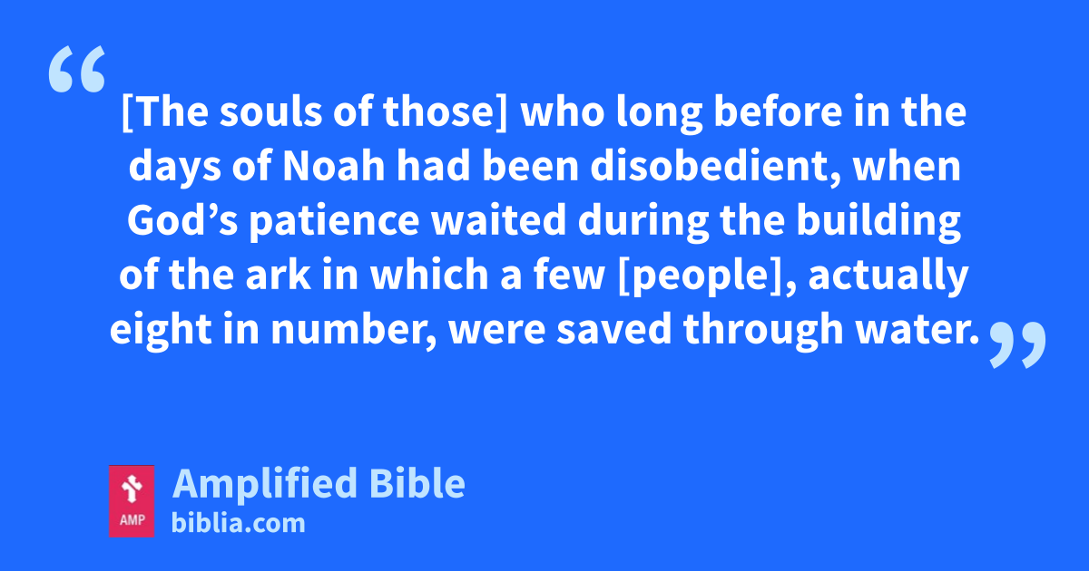 [The souls of those] who long before in the days of Noah had been disobedient, when God’s patience waited during the building of the ark in which a few [people], actually eight in number, were saved through water.