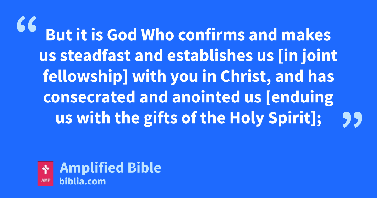 But it is God Who confirms and makes us steadfast and establishes us [in joint fellowship] with you in Christ, and has consecrated and anointed us [enduing us with the gifts of the Holy Spirit];