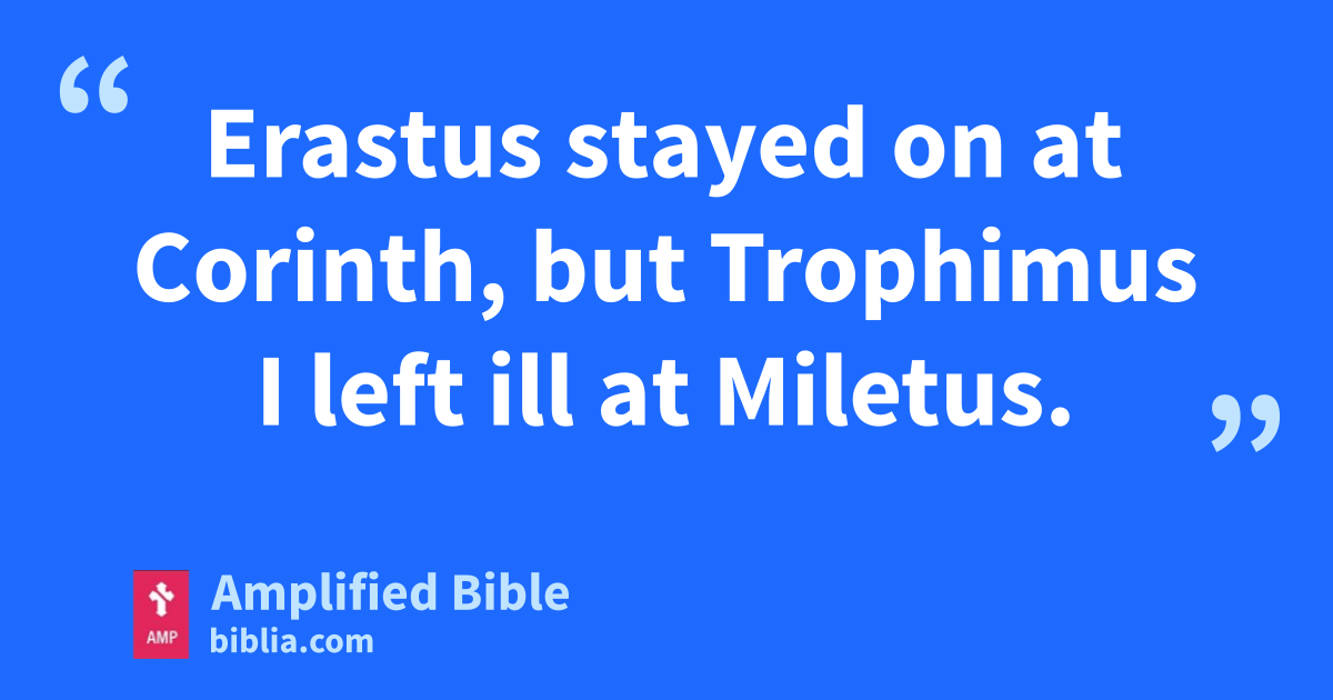 Erastus stayed on at Corinth, but Trophimus I left ill at Miletus.