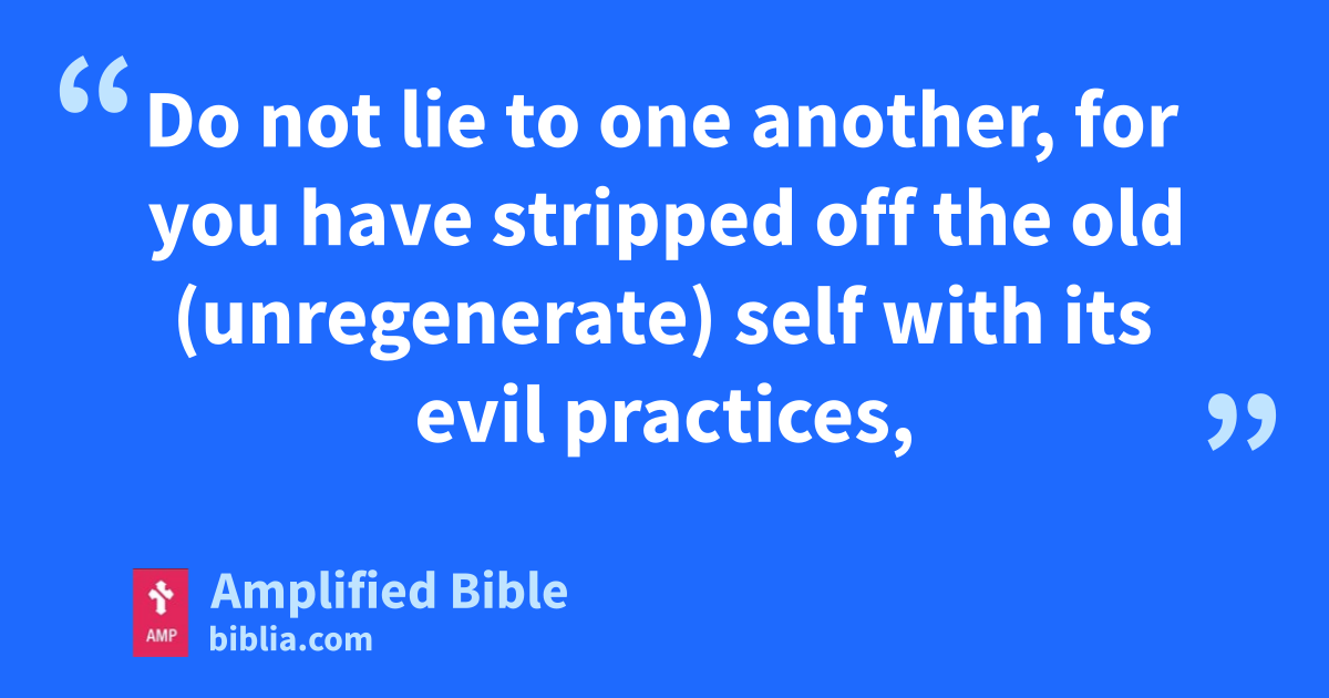 Do not lie to one another, for you have stripped off the old (unregenerate) self with its evil practices,